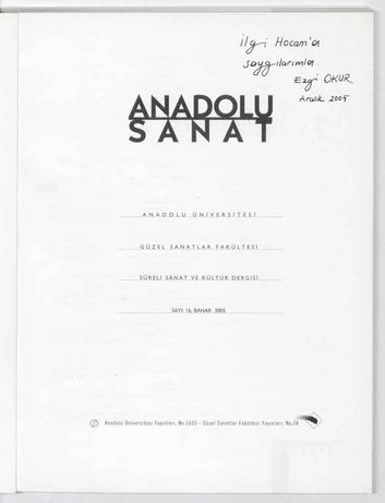 İlgi Adalan ve Formları Üzerine, Ezgi Okur, Bahar 2006, sayı:16, Anadolu Sanati Anadolu Üniversitesi Yayınları
